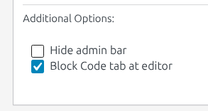 The next piece of code adds for all existing user roles at the bottom of URE page the additional option “Block Code tab at editor”: